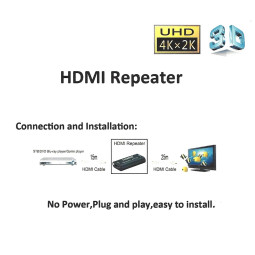 Art.OVf07 Ripetitore di segnale audio video per prolungare e collegare due cavi HDMI fino a 40 metri senza decadimento del segnale, permette di inviare a lunga distanza un segnale audio/video HD, Full-HD o 4K;3D ideale per condividere video da Decoder o Pc o da qualsiasi altra fonte a Tv,...