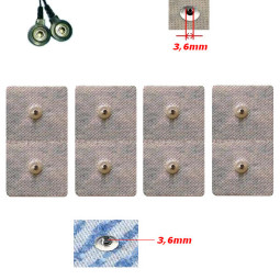 Art.ESf06 kit di 4 elettrodi adesivi lunga durata rettangolari 5x10cm monopolari con doppia clip snap piccola diametro 3,6mm, utilizzabili se tutti gli elettrostimolatori che utilizzano elettrodi con clip testina piccola o forata come beurer sanitas compex, prezzo riferito a un kit di 4...