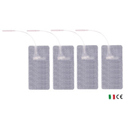 Art.ETf06 PG473W2 kit di 4 elettrodi adesivi doppi lunga durata, monopolari con 2 fili spinotti, rettangolari 4,5x8cm utilizzabili se tutti gli elettrostimolatori con filo spinotto boccola baionetta, Anallergici Latex Free, Made in Italy, CE Se sei un professionista del settore richiedi...