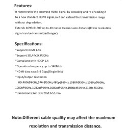 Art.OVf07 Ripetitore di segnale audio video per prolungare e collegare due cavi HDMI fino a 40 metri senza decadimento del segnale, permette di inviare a lunga distanza un segnale audio/video HD, Full-HD o 4K;3D ideale per condividere video da Decoder o Pc o da qualsiasi altra fonte a Tv,...