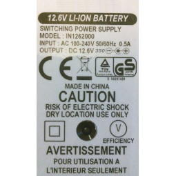 Art.iMf17 Caricatore Automatico per 3 elementi al litio collegati in serie (3S 11,1V-12,6V), alimentazione 220V, Massima corrente di carica 350mA, jack maschio 5,5mm (polo positivo centrale) tensione di uscita 11,1-12,6V